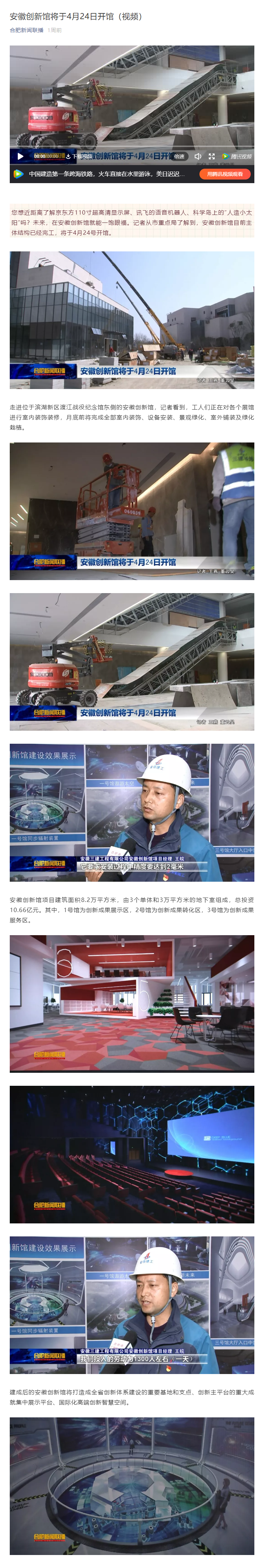 合肥新聞聯播微信公眾號——安徽創新館將于4月24日開館