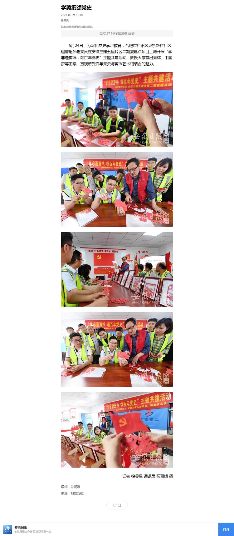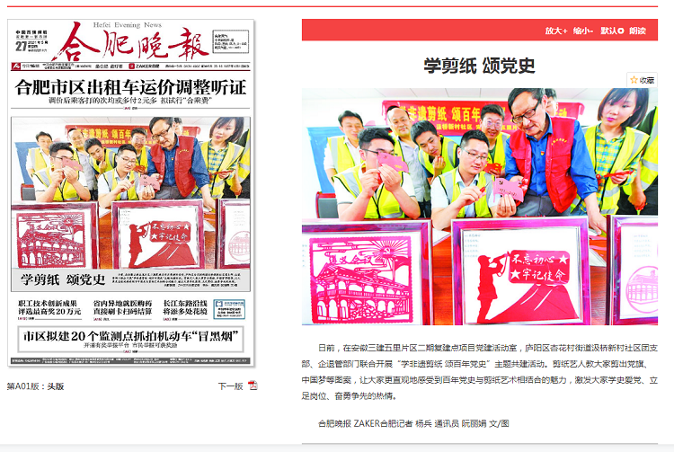 安徽日報、合肥晚報、安徽日報公眾號——學剪紙頌黨史