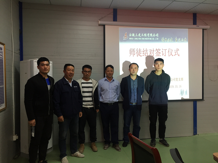 隨后,進(jìn)行了師徒結(jié)對(duì)簽訂儀式,三名新入職的大學(xué)生分別與優(yōu)秀老職工簽訂了師徒協(xié)議,結(jié)成師徒。分公司領(lǐng)導(dǎo)班子勉勵(lì)青年員工在今后的工作中向師傅、前輩多學(xué)習(xí)、多請(qǐng)教,盡快適應(yīng)工作環(huán)境,蛻變成敢擔(dān)當(dāng)、勇創(chuàng)新、有作為的人。